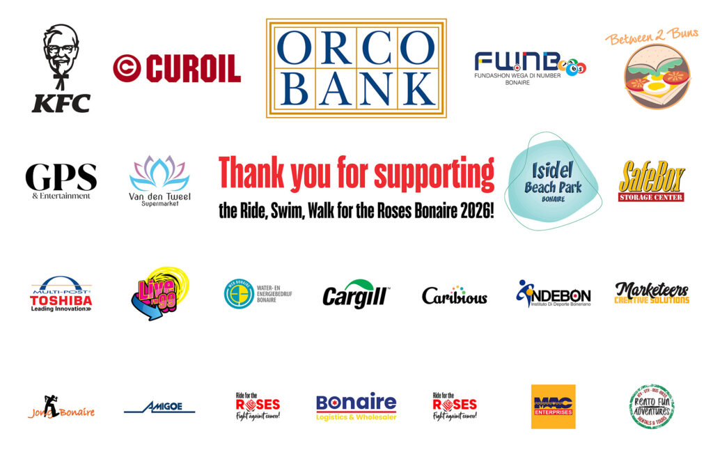 De in januari 2016 opgerichte Stichting Ride for the Roses Bonaire organiseert op zondag 01 februari, de negende editie van de Swim, Walk and Ride For The Roses. Heel Bonaire kan zijn solidariteit tonen met kankerpatiënten, hun dierbaren en nabestaanden door mee te lopen, mee te zwemmen, surfen of te fietsen. Ben je echt sportief dan kun je de Walk en Swim of de Ride en Swim combineren.
